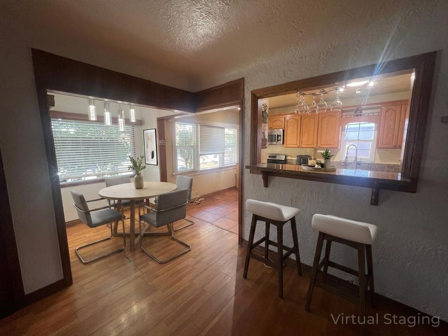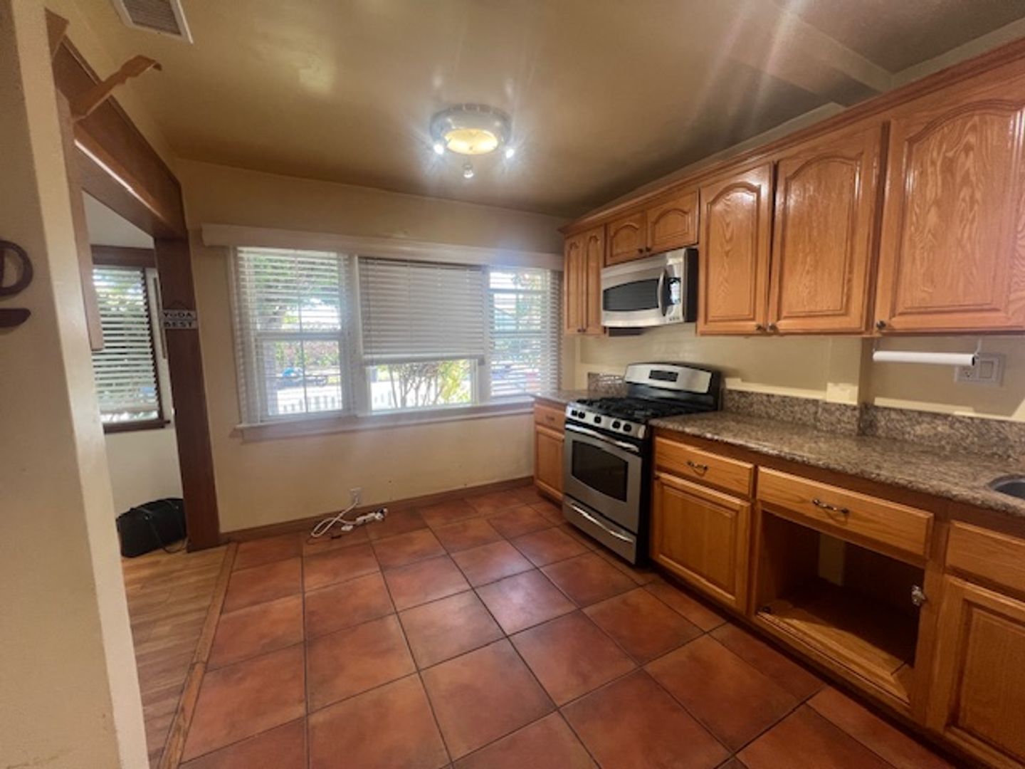 Nestled in North Long Beach right on the border of the prestigious Bixby Knolls area, this beautiful three-bedroom, two-bath home welcomes you with exceptional curb appeal and an inviting front porch. The heart of the home features an open-concept living and dining room that feels bright and airy, offering a generous layout perfect for both daily relaxation and effortless hosting. The well-appointed kitchen serves as a functional centerpiece, complete with elegant granite countertops and an abundance of cabinetry and drawers for all your storage needs.