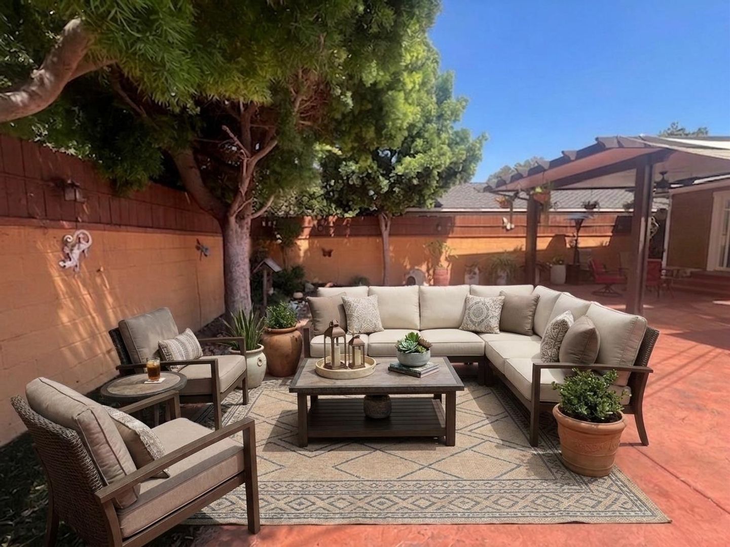 The thoughtful floor plan continues through to three well-proportioned bedrooms, each providing ample closet space to ensure comfort for everyone. Adding to the home’s modern appeal are two beautifully remodeled bathrooms, each updated with contemporary finishes that provide a fresh and sophisticated feel. Stepping outside, you will find an entertainer’s dream in the fully enclosed backyard. This private sanctuary is designed for year-round enjoyment, boasting expansive patio area and lush, mature landscaping that adds a touch of serenity to your outdoor gatherings.