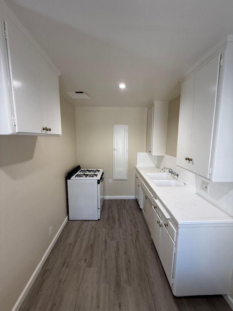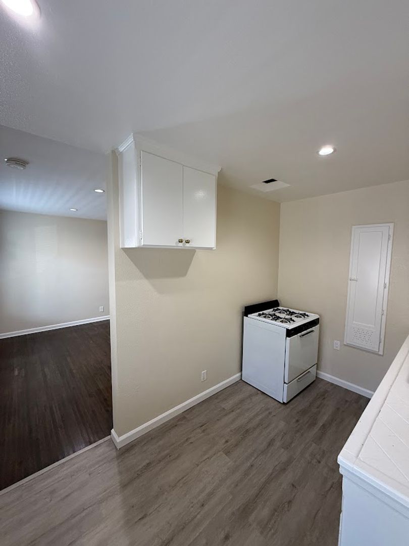 This cozy, South of the Boulevard, upstairs 1 bedroom, 1 bath apartment is ready for immediate move-in. New vinyl flooring throughout. Adorable kitchen with ample cupboard space. Nice size bedroom with great closet space. Unit will have a new stainless steel range and refrigerator installed before move-in. Just a short distance to dining, shopping and movies. Easy access to freeways. 1 parking space and shared laundry. Tenant responsible for 1/12 of common area water, trash, sewer and electricity in addition to unit gas and electric. Please contact Shannon at 818-792-9515 cell, 818-366-8812 office or email shannon.greene@prellis.com to schedule a viewing.